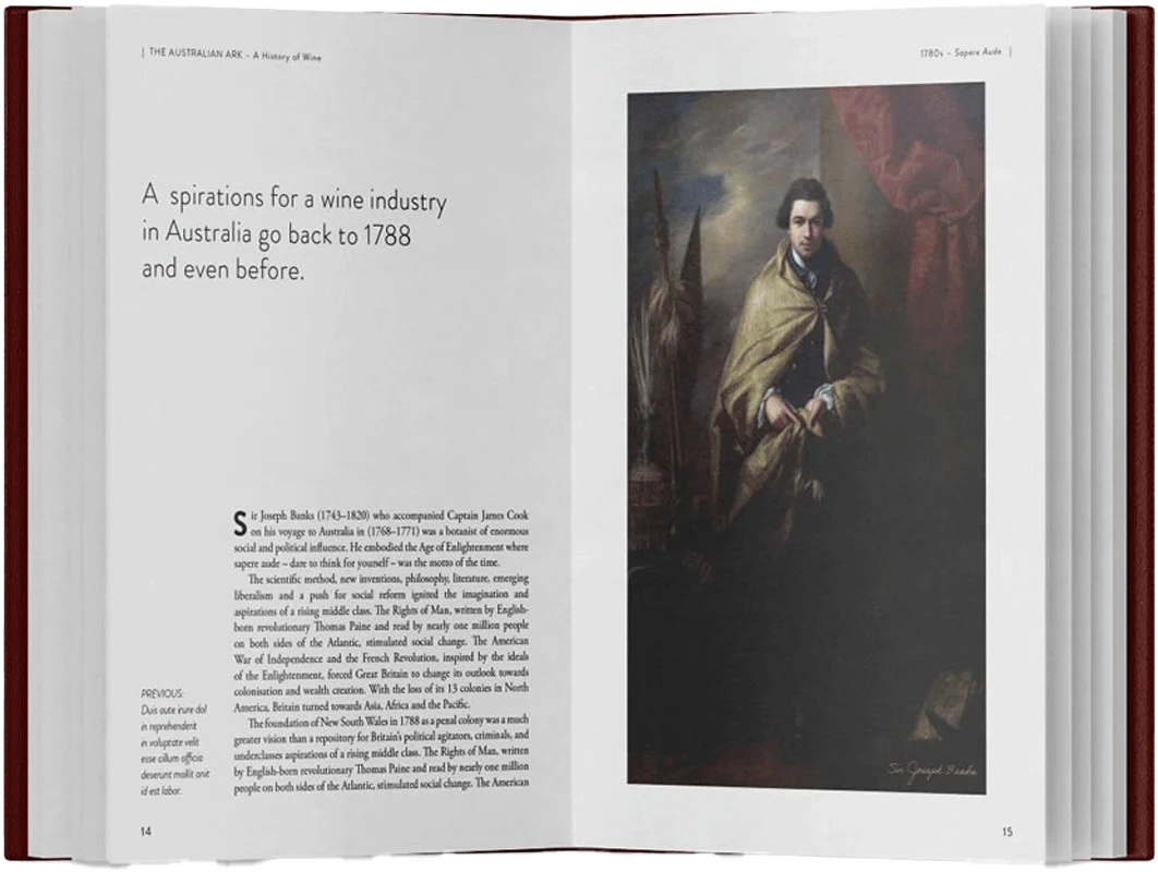 Beautifully researched and elegantly written, The Australian Ark spans from 1788 to the present day, divided into three comprehensive volumes: Volume 1: 1788–1900, The Colonial Era; Volume 2: 1901–1983, Federation to the Modern Era; and Volume 3: 1983–present day, Contemporary Times – Recollections and Perspectives. This extensive narrative reveals how Australian wine has remained central to the nation’s cultural and economic identity, despite never eclipsing other industries like wool or mining.